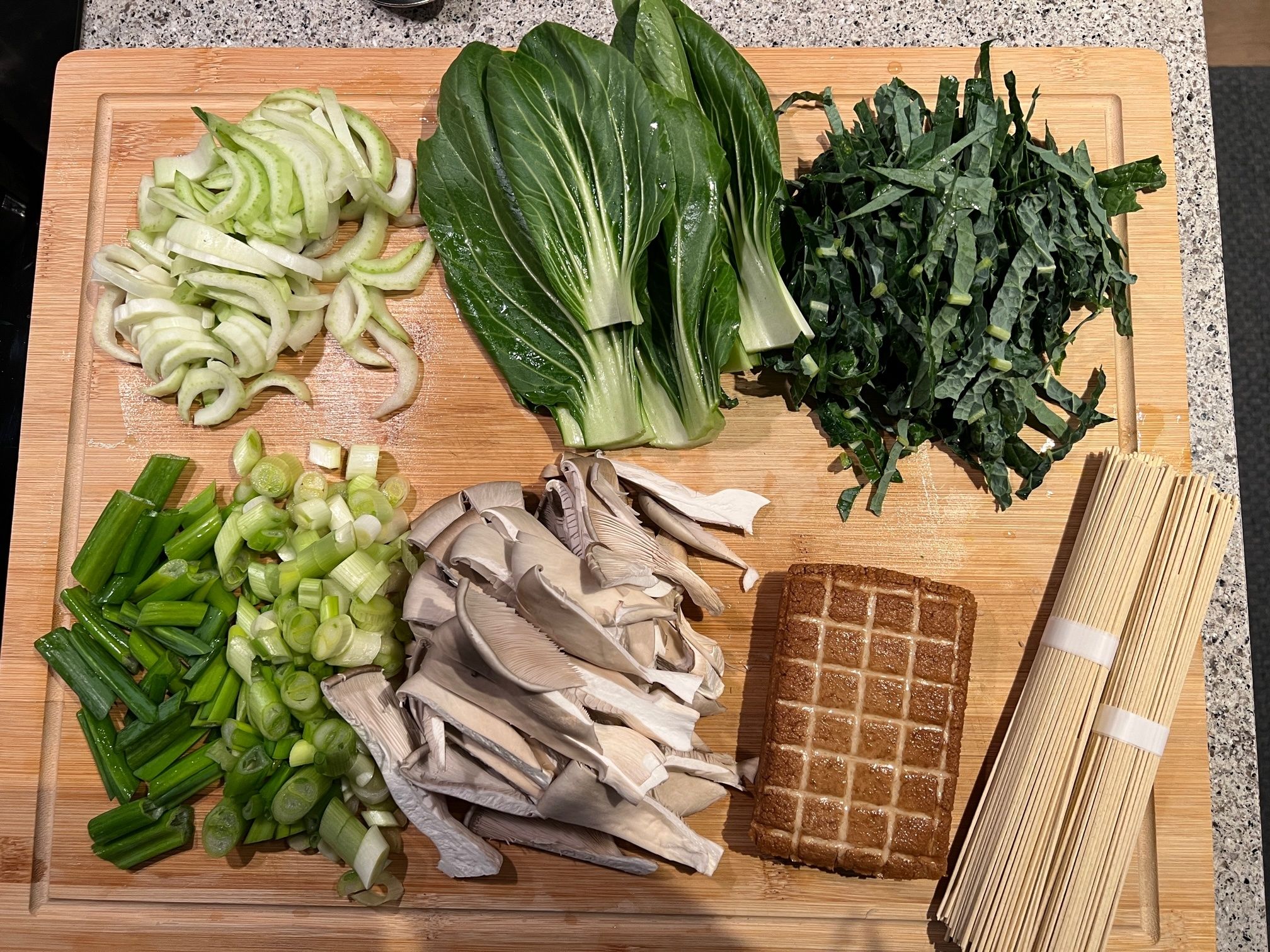 Gemüse - die Auswahl an Gemüse, die letzte Woche angeboten wurde, hat mich zu Ramen inspiriert, aber man kann wirklich alles verwenden, worauf man Lust hat. In diesem Fall habe ich verwendet:
