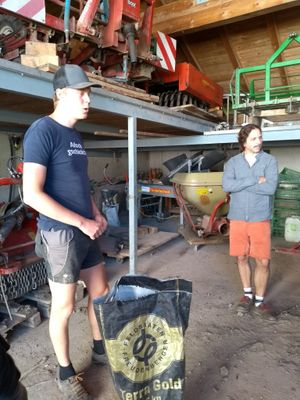 Nathanael hat uns mit seiner Führung über den Hof begeistert. Neben eigenenTüfteleien rund um nahezu alle Geräte, ist er ungemein innovativ unterwegs und züchtet seine Mikroorganismen selber und experimentiert mit korean natural farming und deren Fermenten zur Düngung.